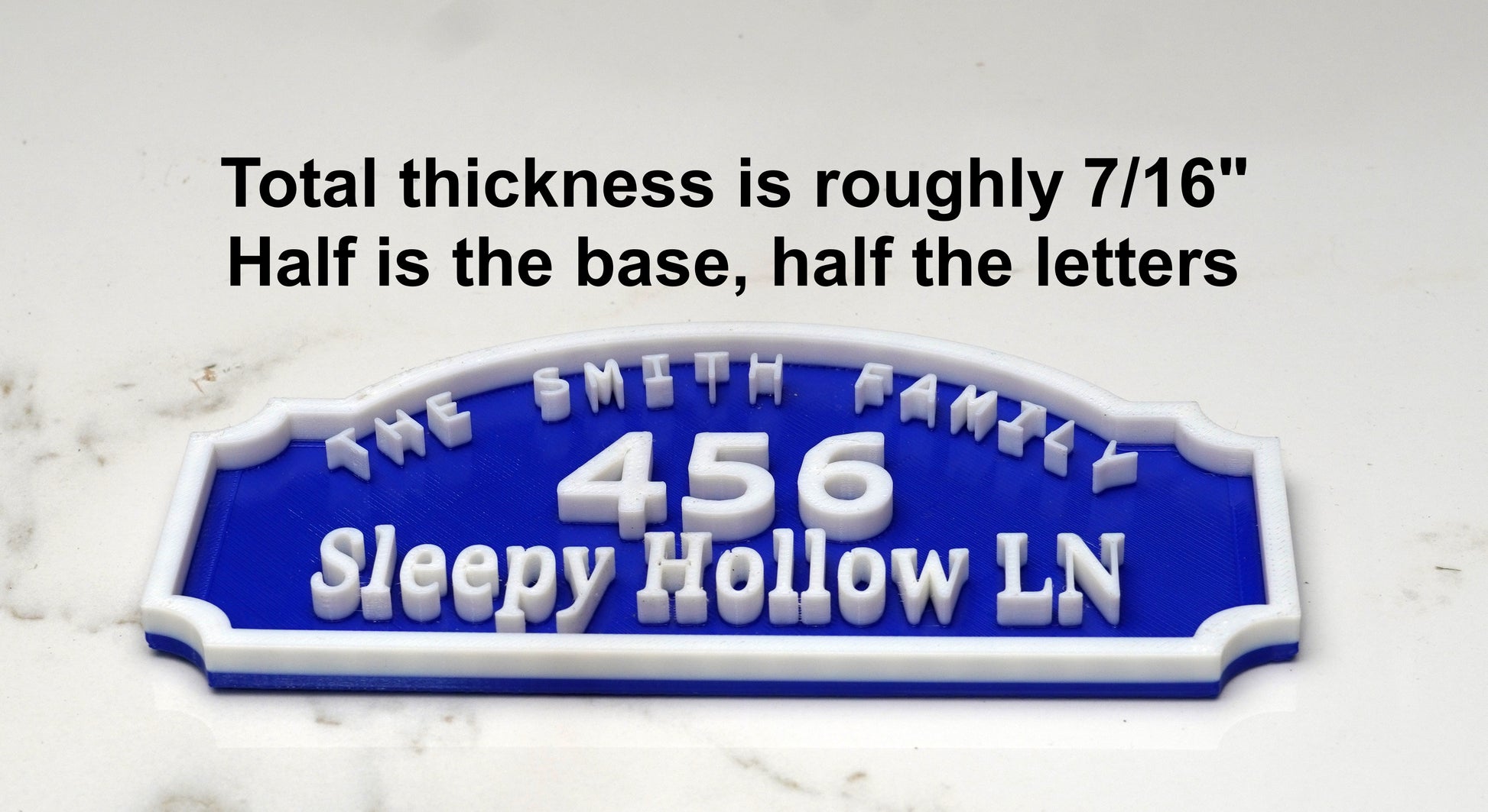 Add a personal touch to any home with this fully customized 3D-printed address sign. Each sign is made to order with your family name, street number, and street name, creating a beautiful and practical piece perfect for front porches, mail posts, entryways, or interior décor.